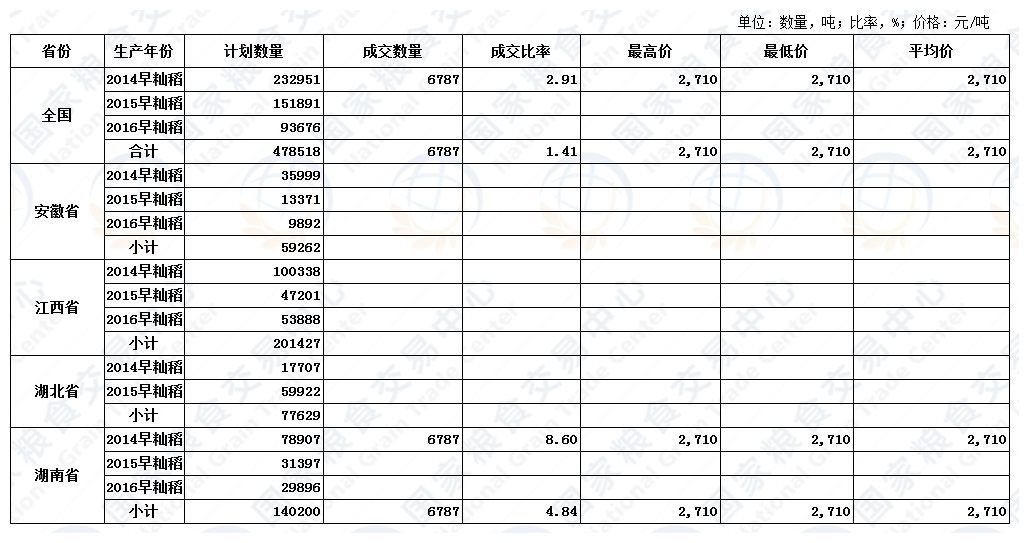 湖北粮网: 交易结果
